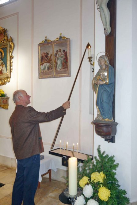 85 Jahre ist es her, dass auf einem Hügel zwischen den Orten Prutdorf und Wildenwart die Pfarrkirche „Christkönig“ von Michael Kardinal Faulhaber eingeweiht worden ist. Der Kirchenbau in wirtschaftlich schwierigen Zeiten war erforderlich geworden, weil der Platz in der Kapelle vom Schloss Wildenwart bei den Gottesdienstzeiten bei weitem nicht ausreichte und weil andererseits die weiten Fußwege zu Gottesdiensten in Prien für die Ortschaften rund um Wildenwart gerade im Winter arg strapaziös waren. Den Ausschlag, dass der Bau verwirklicht werden konnte, war zwei glücklichen Umständen zu verdanken. Einmal unterstützte das Haus Wittelsbach das Vorhaben zumal das Schloss von Mitgliedern der Familie von König Ludwig III. bewohnte war. Eine weitere Hilfe war ein eigens gegründeter Kirchenbauverein, der die Arbeiten und Finanzierung enorm förderte. Das Gotteshaus erinnert in mehrfacher Weise an das Bayerische Königshaus. So zeigt unter anderem das Altarbild König Ludwig III. und seine Gemahlin Königin Therese. Alljährlich wird am letzten Sonntag im kirchlichen Jahreskreis vor Beginn der Adventszeit das Kirchenpatrozinium „Christkönig“ feierlich gestaltet. Dabei erinnerten Pfarrer Klaus Hofstetter und Gemeindereferentin Ursula Stacheder daran, dass der wahre Herrscher Jesus Christus ist. „Wir alle sind Christkönig und Königskinder, weil wir getauft sind“, so Pfarrer Hofsteter. Die musikalische Gestaltung lag in den Händen vom Wildenwarter Kirchenchor unter der Leitung von Lisi Huber, bei Helmut Rosenwink an der Orgel und bei Trompeter Peter Aicher in besten Händen. Ein abschließender Dank von den Vertretern des Seelsorgeteams galt allen ehrenamtlich für die Wildenwarter Pfarrei tätigen Frauen und Männern, die –oft im Stillen- zu einem lebendigen Gemeinschafts- und Kirchenleben in Wildenwart beitragen.