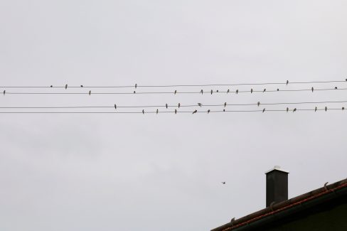 Abschiedsmelodie – wie auf einer Notenzeile formieren sich die Schwalben zum Abschied. Eine Schwalbe macht dem Sommer noch kein Ende – aber wenn so viele auf den Telefon- und Stromdrähten zusammen kommen, dann ist es bald vorbei mit den Sommertagen und der Herbst zieht ins Land. Überall finden sich die gefiederten Sommergäste bereits zu großen Schwärmen zusammen und bereiten sich auf den großen Flug ins Winterquartier vor. Heuer hatten sie ein gutes Jahr und zogen zwei Nester mit vielen Jungen groß. Alle miteinander machen sich fertig für den Flug in den Süden. Die Mauersegler sind schon lange nicht mehr da und ein paar Tage noch, dann haben wir die beiden Marienfeiertage im September und an Mariä Geburt – 8.September – fliegen die Schwalben spätestens furt, da helfen auch ein paar schöne Spätsommertage nichts mehr. Zu Michaeli am 29. September kommen dann die Kühe von den Almen zurück und dann kehrt wieder die herbstliche Ruhe in der Region ein.
