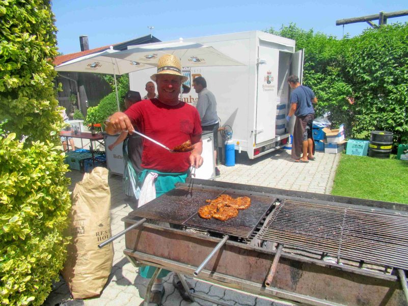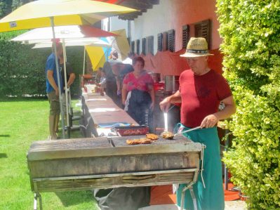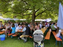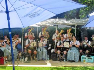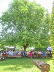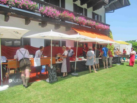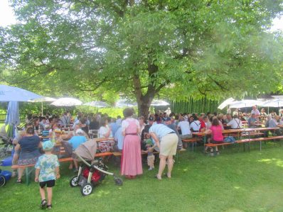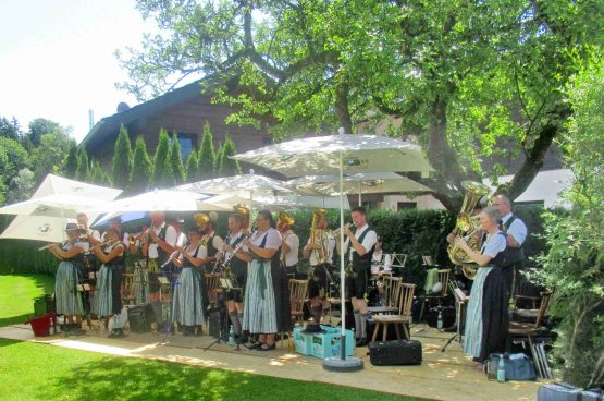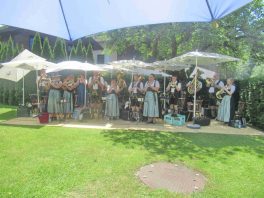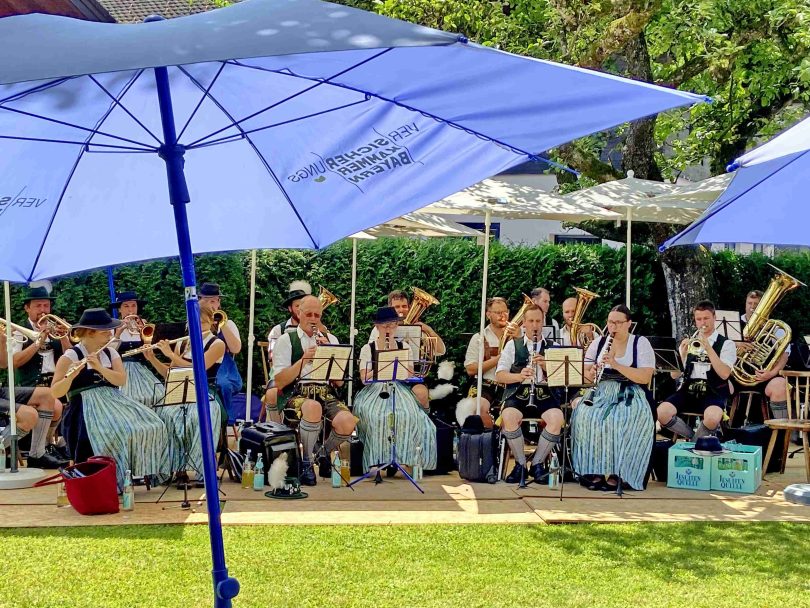 Nach drei Jahren war es endlich wieder soweit: der Veteranenverein von Wildenwart konnte wieder seinen traditionellen Juni-Blasmusik-Frühschoppen abhalten. Ort war wieder der schattige Platz unter einem riesigen Nußbaum im Garten der Steindlmüller-Familie von Prien-Kaltenbach. Veteranen-Vorstand Florian Bauer zeigte sich ob des guten Besuchs und des Zusammenhalts des ehrenamtlichen Aufbau-, Küchen- und Service-Personals überaus zufrieden und bedankte sich ganz herzlich bei der Wildenwarter Blaskapelle unter der Leitung von Dirigent Sebastian Graf für deren schöne Blasmusik. Sein Vorgänger im Amt, Heinrich Rehberg wies darauf hin, dass es im kommenden Jahr 2023 genau 40 Jahre werden, dass zur Belebung des Vereinslebens der musikalische Frühschoppen seinen Anfang nahm.