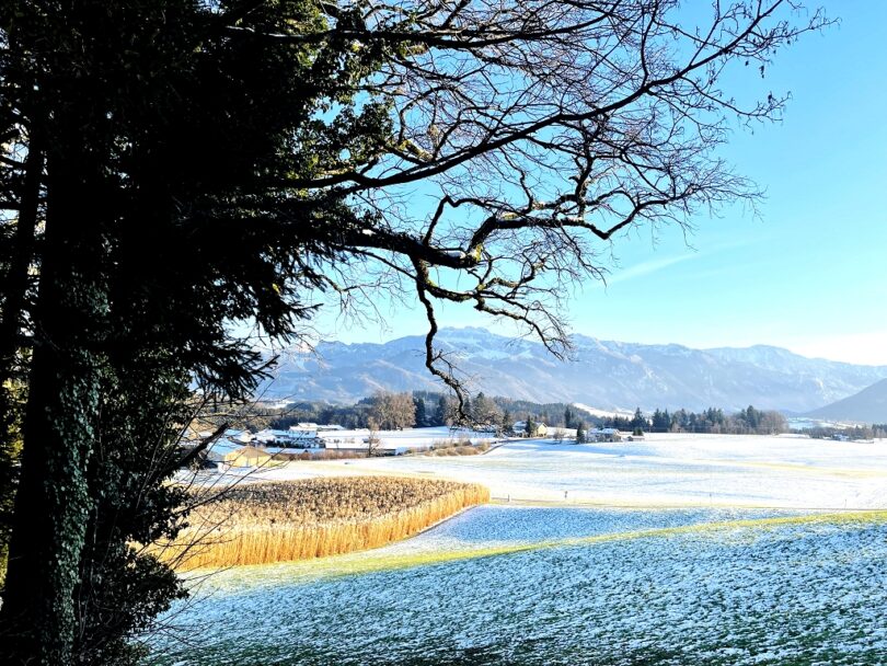 Rund um die Pfarrkirche “Christkönig” von Wildenwart gibt es immer wieder Plätze und Punkte, um den Chiemgau oder das 1934 eingeweihte Gotteshaus auf einem Hügel stehend schön anzuschauen.