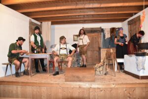 der geschossene Bock (links am Stuhl) wird gefeiert Von links Simon Zaiser, Otto Zaiser, Alex Speiser, Tom Pletschacher, Gabi Speiser, Christina Pletschacher