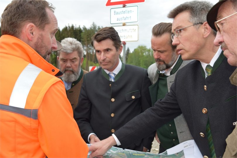Bei der Begehung wurde Einblick in die neuesten Planungen des Staatlichen Bauamtes Rosenheim genommen. Diese zeigen, dass das Staatliche Bauamt im Bereich Öllerschlößl über die Planfeststellung hinaus Unterführungen für das Nieder- und auch Hochwild schaffen wird. „Der Erhalt eines lebenswerten und attraktiven ländlichen Raums ist uns in der CSU-Landtagsfraktion ein wichtiges Anliegen. Dazu gehört auch ein gutes Miteinander was die Lebensräume von Mensch und Tier betrifft“, erklärt Otto Lederer. Ein großes Lob richtete der jagdpolitische Sprecher Beißwenger unter anderem an Stefan Högenauer, Bereichsleiter Straßenbau am Staatlichen Bauamt Rosenheim, und Matthias Geitz, Abteilungsleiter im Bereich Straßenbau des Staatlichen Bauamtes Rosenheim: „Aufgrund der sehr guten Planungen wird der Sicherheit der Bürgerinnen und Bürger und auch dem Schutz unserer heimischen Tiere, wie zum Beispiel Hasen und Rehen, entsprechend Rechnung getragen!“