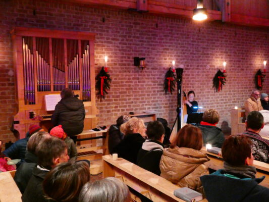 Im Advent gelte es, die Tür zu öffnen, dass Gott an Weihnachten einziehen könne. „Wir wollen auch die Herzen öffnen für den Glauben, der uns trägt“, fügte er hinzu. Feierliche Melodien kamen vom Organisten Andreas Rieth auf der in diesem Jahr in der Gebirgskirche neuinstallierten und eingeweihten Orgel und von Alexandra Scheufler auf der Harfe. Adventliche Lieder trugen auch das Gesangsduo Maria Auer/Angelika Hipper und ein Familiengesang aus Aschau bei. Die Feier klang gemütlich aus im Kirchenfoyer bei Glühwein und Weihnachtsplätzchen.