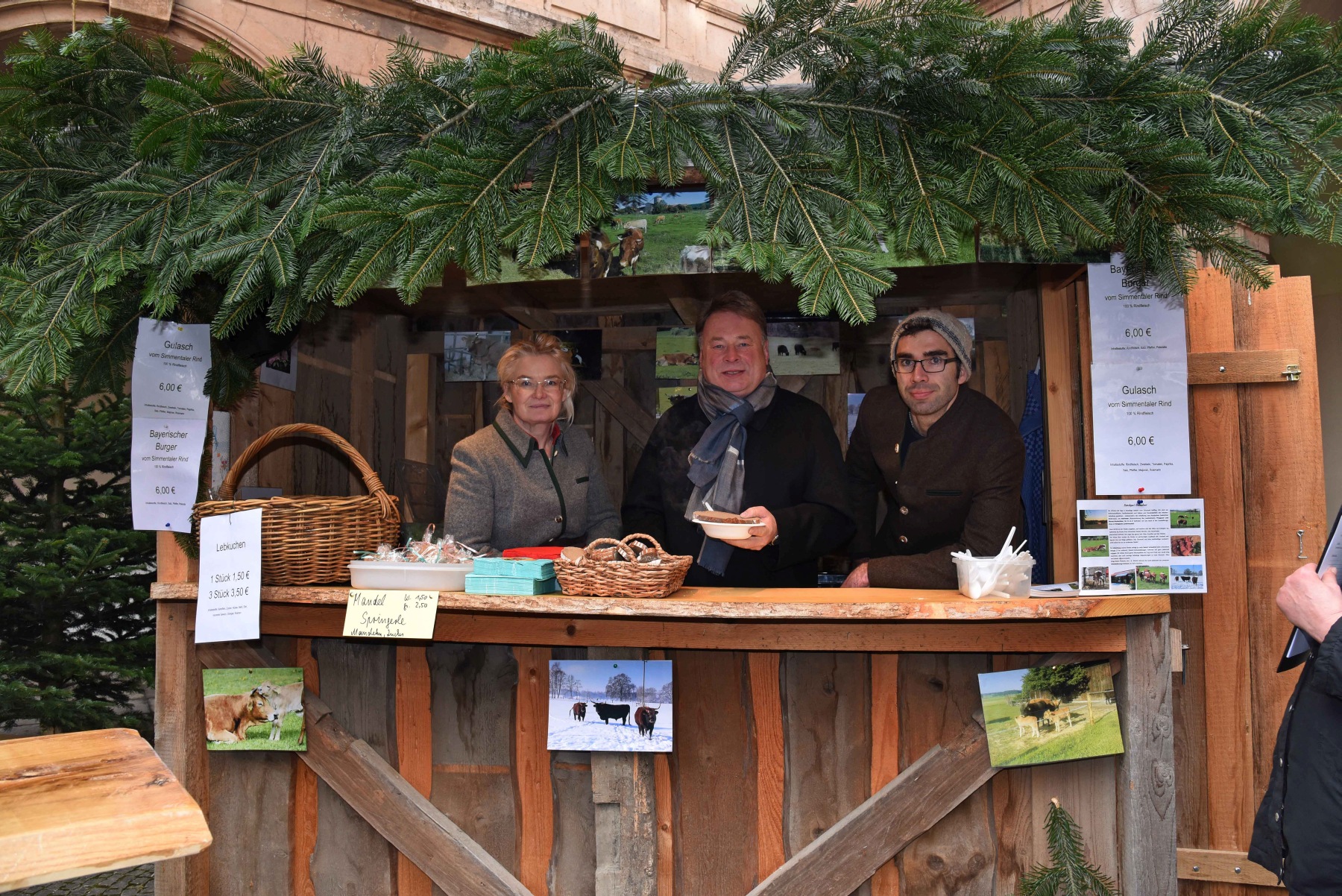 Staatsminister Helmut Brunner (M.) mit Petra und Alexander Murner (Gartenbäuerinnen Rosenheim) aus Höslwang (Lkr. Rosenheim) mit ihren Schmankerln