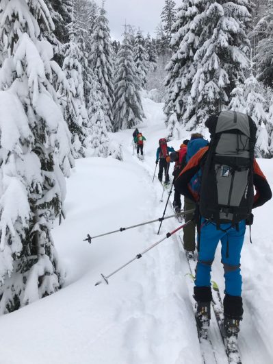 Lawinen, verunglückte Skitourengeher oder gestürzte Wanderer sind nur ein paar der möglichen Einsatzszenarien für die Bergwacht Rosenheim – Samerberg im Winter. Bei eisigen Temperaturen und mehreren Metern Schnee ist die Rettung von Patienten mit besonderen Herausforderungen für Mensch und Material verbunden. Damit wir auf alle möglichen Situationen bestmöglich vorbereitet sind, wird besonders im Winter viel trainiert. Mehrmals im Winter finden Ausbildungswochenenden an unserer Grozach-Diensthütte statt. Zusammen mit Manfred Steffl von der Lawinenkommission Bayern, wurde dieses Jahr ein besonderes Augenmerk auf die Beurteilung des Schneedeckenaufbaus gelegt. Mit dem Blocktest wurde an verschiedenen Stellen „in die Schneedecke geschaut“ und die unterschiedlichen Schneeschichten begutachtet. Je nach Ausbildungsstand wurde in mehreren Stationen vom Umgang mit LVS, Schaufel und Sonde bis hin zum planmäßigen Lawineneinsatz fleißig geübt und neue Erfahrungen gemacht.