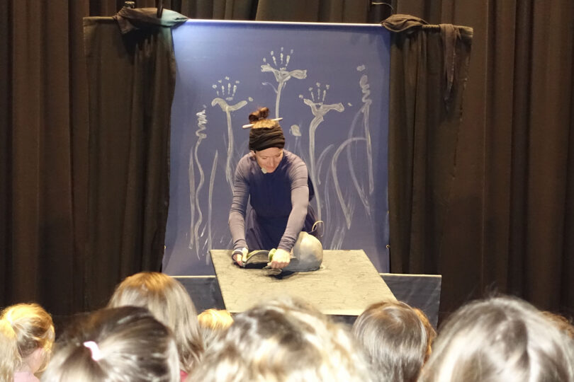 46 Kinder der Nationalpark-Kindergruppen trafen sich kürzlich zum Winterfest im Nationalparkzentrum „Haus der Berge“. Auf dem Programm standen verschiedene Aktionen rund um das Thema „Insekten im Nationalpark“. Die Kinder bastelten Käfer aus Naturmaterialien, lauschten dem Figurentheater „Zirzop“ mit dem neuen Programm: „Ton ab! Ein Käferabenteuer mit Ton und Tönen“ (Foto) und schauten den Insektenforschern des Nationalparks bei ihrer Arbeit über die Schulter. Die Eltern nutzten die Gelegenheit, sich von Nationalparkmitarbeitenden durch die Ausstellung „Vertikale Wildnis“ im Nationalparkzentrum führen zu lassen.