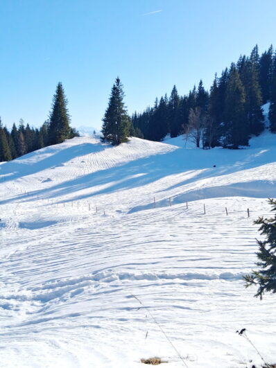 Sonne und Schnee im Winter in jeweils passenden Dosen laden im Chiemgau gerne zu Wanderungen ein.