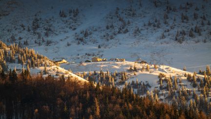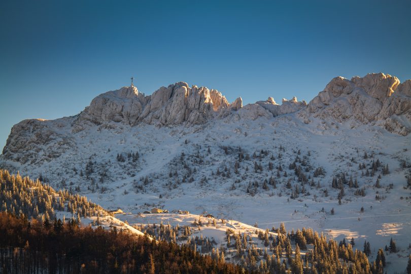 Winterlicher Blick auf die Steinlingalm auf der Kampenwand