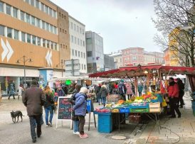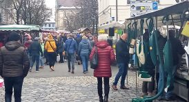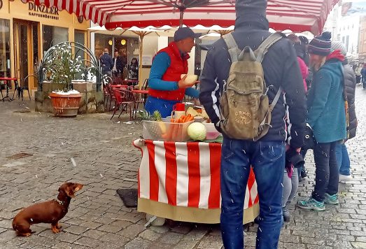 Auch ein Zamperl verfolgte die Darbietung eines Standbetreibers mir großem Interesse, wie auf unserem Beitragsbild zu sehen ist. Das Angebot an den 40 Marktständen reichte von Kleidung und Handyhüllen über Käse, Wurst und Gewürzen bis hin zu Staubsaugern und Dekoartikeln. Reges Treiben herrscht auch in den Geschäften, die heute ebenfalls noch bis 18 Uhr geöffnet haben. Dort darf heute erstmals nach zwei Jahren auch wieder ohne Maske geshoppt werden.