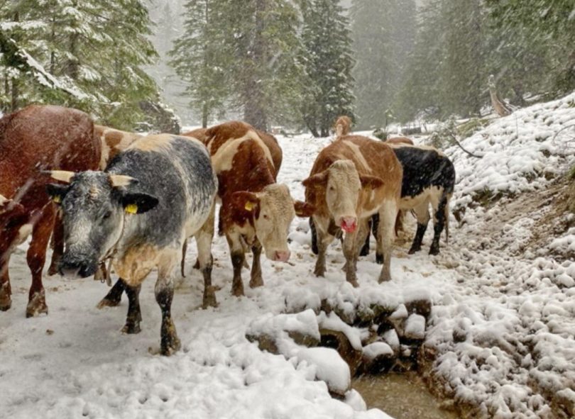 Der überraschende Schnee- und Wintereinbruch in den höheren Chiemgauer Bergen und Almgebieten hat dazu gesorgt, dass manches Almvieh, das gewöhnlich um “Michaeli” (29. September) ins Tal gebracht werden, umgehend heimgeholt werden. Unsere aktuellen Aufnahmen zeigen die schneebedeckte Hofbauernalm im Kampenwandgebiet und einige der Tiere beim winterlichen Heimgang.