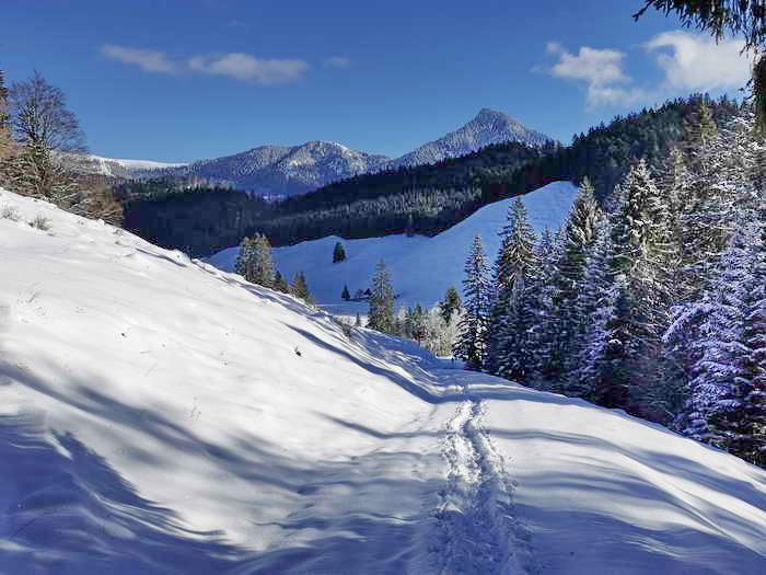 Schwierigkeit: leichte, einfache Schneeschuh- oder Winterwanderung. Nur im Aufstieg zur Daffnerwaldalm gibt es eine steilere Passage. Ansonsten einfache, flache Wald- und Wiesenwege. Für Hunde geeignet