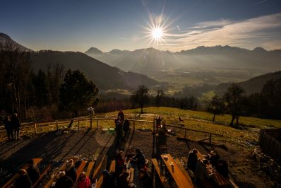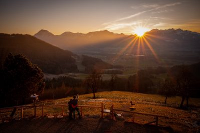 „Sonne tanken und herrliche Aussichten genießen“ – dieses Erlebnis ist derzeit auf der Dandlbergalm vom Samerberg möglich. Hoch über dem Inntal zeigt sich das dahinter liegende Bergmassiv mit dem Wendelstein besonders faszinierend, wenn sich die Wintersonne allmählich vom Tagesgeschehen verabschiedet und dankbar staunende Betrachter hinterlässt. Die Dandlbergalm hat auch im Winter geöffnet, lediglich montags und dienstags sind Ruhetage. Nähere Informationen gibt es auch unter www.dandlbergalm.de .