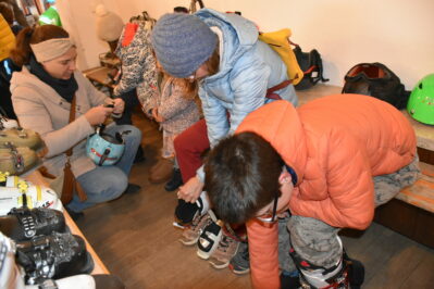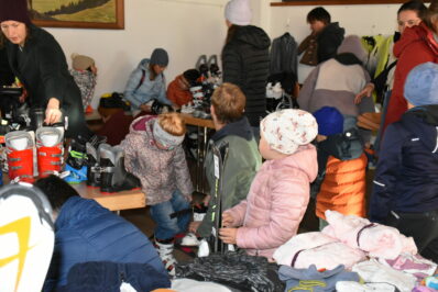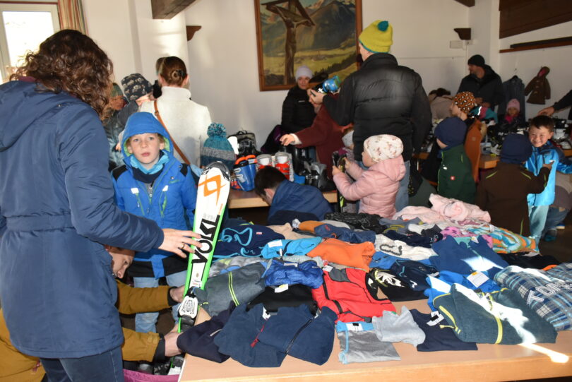 Nicht mehr benötigte Wintersportartikel und Bekleidung konnten im Vorfeld abgegeben werden, wurden registriert und mit einem Preis versehen. Zehn Prozent des Verkaufserlöses geht als Spende an die „Murmeltiere“. Die ersten Artikel wurden schnell verkauft unter fachkundiger Beratung der Expertinnen Monika Müllinger und Lena Zieher. Besonders Artikel aus denen die Kinder jährlich herauswachsen, waren im Angebot, aber auch die Erwachsenen wurden fündig. Nach dem Aussuchen und Probieren ging es an den Stand mit den Kuchenspenden von den Müttern des Vereins der Murmeltiere, auch hier war reger Betrieb.