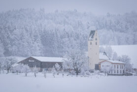 Kaum ließen ein paar sonnige Tage mit den ersten Gänseblümchen und den Spitzen von Krokus und Narzissen leise Frühlingsgefühle aufkommen, kehrte der Winter schon wieder mit einer Menge Schnee zurück. Nach dem recht milden und teils stürmischen Wetter in den vergangenen Wochen wurde es nun auf dem Samerberg weiß und frostig.