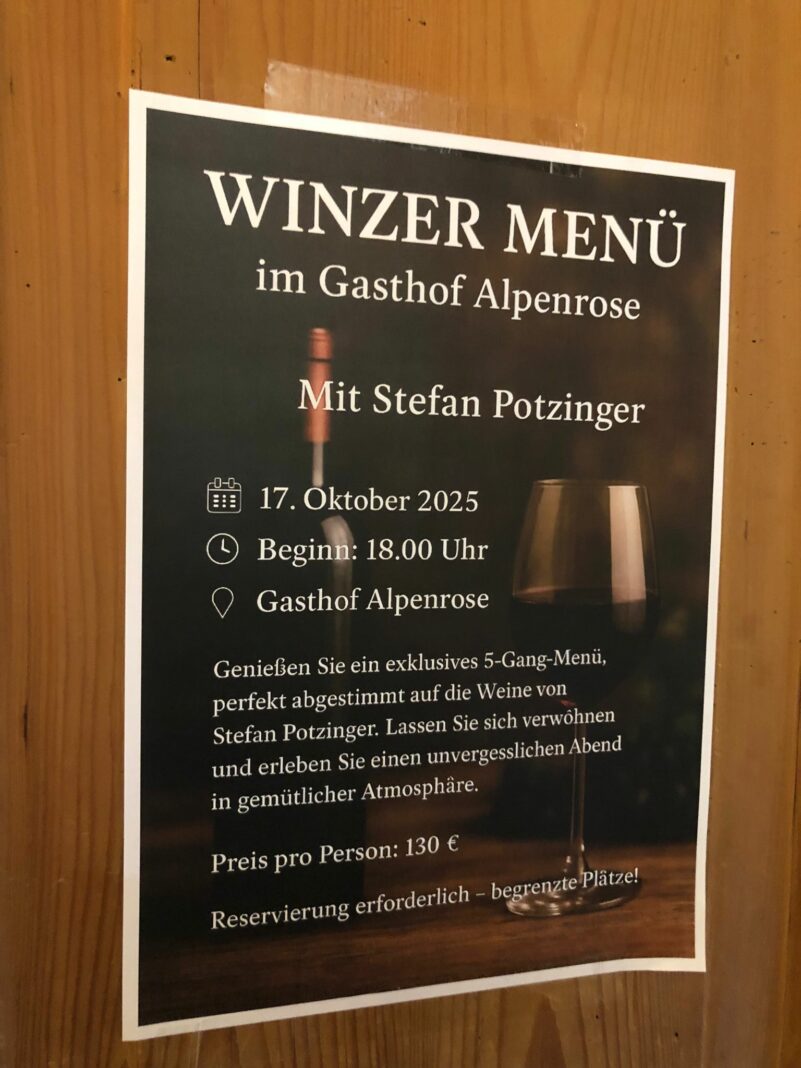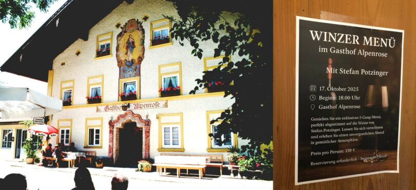 Ein besonderes kulinarisches Angebot bietet der Gasthof Alpenrose in Grainbach auf dem Samerberg am Freitag, 17. Oktober. Zu einem Winzer-Menue-Abend kommt Stefan Potzinger von seinem Weingut in der Südsteiermark.