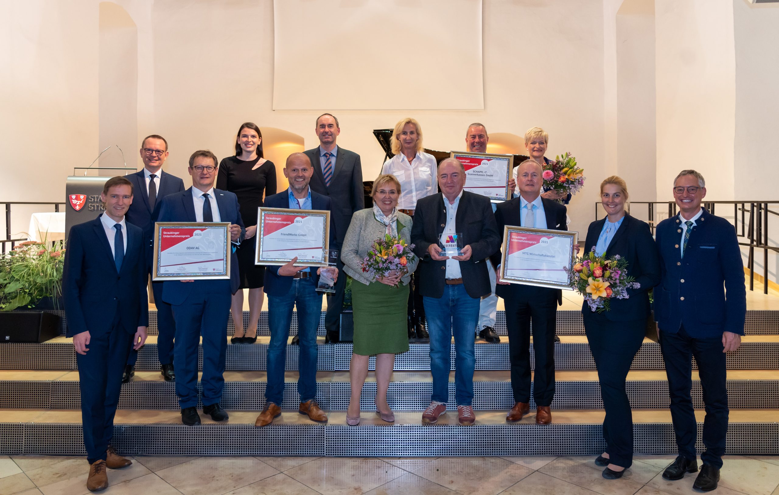 Der Ritterschlag im Rittersaal: Im historischen Rittersaal des Straubinger Herzogsschlosses erhielten die Firmen von Wirtschaftsminister Hubert Aiwanger die Auszeichnung. (Foto: StMWi / E. Neureuther)