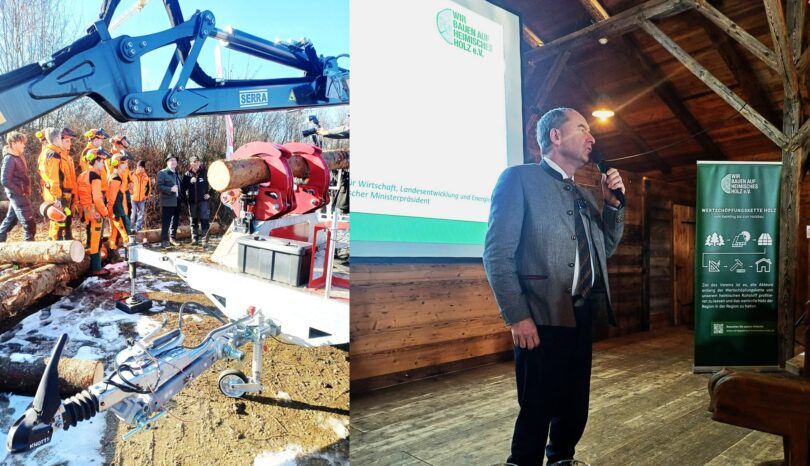 Übersee. „Holznutzung ist Klimaschutz – ein Ster Brennholz ersetzt 120 Liter Heizöl oder 150 Kubikmeter Fracking Gas“, so die Worte von Bayerns Wirtschaftsminister Hubert Aiwanger am Eröffnungstag der Oberbayerischen Holztage im Almstadl vor Hunderten von Besuchern. Gekommen waren die Politprominenz nicht nur aus Traunstein, Rosenheim, Mühldorf und Berchtesgaden sowie Bürgermeister vieler Gemeinden und sehr viele Vertreter von Waldbesitzervereinigungen in Südostbayern.