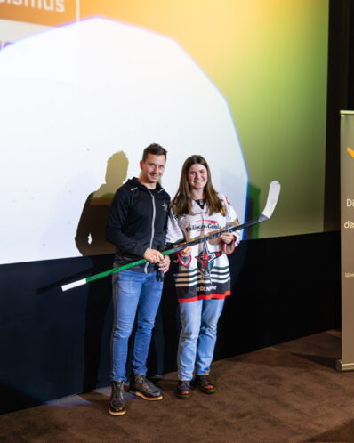 Die Patenschaft hatten Landrat Otto Lederer und der Kapitän der Starbulls Rosenheim, Dominik Daxlberger, ein ehemaliger Absolvent der Wirtschaftsschule, übernommen. Neben der feierlichen Auszeichnung konnten sich auch viele Gäste über schöne Gewinne aus der Tombola freuen. Unter den begehrten Preisen befanden sich ein Original-Trikot und ein von Dominik Daxlberger signierter Hockey-Schläger In seiner Rede betonte Landrat Otto Lederer, dass der Titel nicht nur eine Auszeichnung, sondern auch ein Auftrag sei. Dieser solle nicht nur in der Schule, sondern auch im privaten Leben und in der Gesellschaft außerhalb der Bildungsstätte gelebt werden. Dominik Daxlberger wies auf Grundtugenden des Sports – Toleranz und Fairplay – hin und unterstrich, dass vor allem im Teamsport nur durch Wertschätzung für den Nächsten Erfolg möglich sei, während Ausgrenzung zu Niederlagen führe.