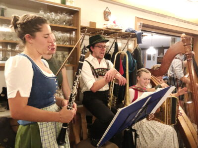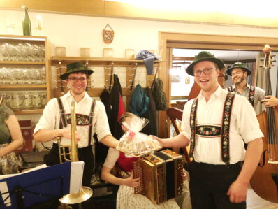 Die frischen, frechen und schneidigen Gesangsstücke wurden von der „Glühwein Musi“, formiert aus Musikanten rund um den Auerberg, sowie der schwungvollen Besetzung „Fritzi & Friends“ aus Trauchgau aufgespielt. Mit spontanen und humorvollen Zwischentönen lieferten die Mundartsprecher Martin Dorn, Martin Kreuzer und Konrad Witzigmann der großen Sängerschaft interessante Einblicke in das Eheleben, den Wirtshausbesuch oder den Allgäuer Alltag. Den bunten und kurzweiligen Abend schloss Stefan Höllthaler mit der frohen Botschaft er habe heute ein „innerliches Leberkas-Semmi-Essen“ durchlebt und er freue sich schon auf das anstehende Adventssingen in der Auerbergkirche. Zufrieden und mit Lebensweisheit bereichert traten alle Sänger und Musikanten zu später Stunde den Heimweg an.