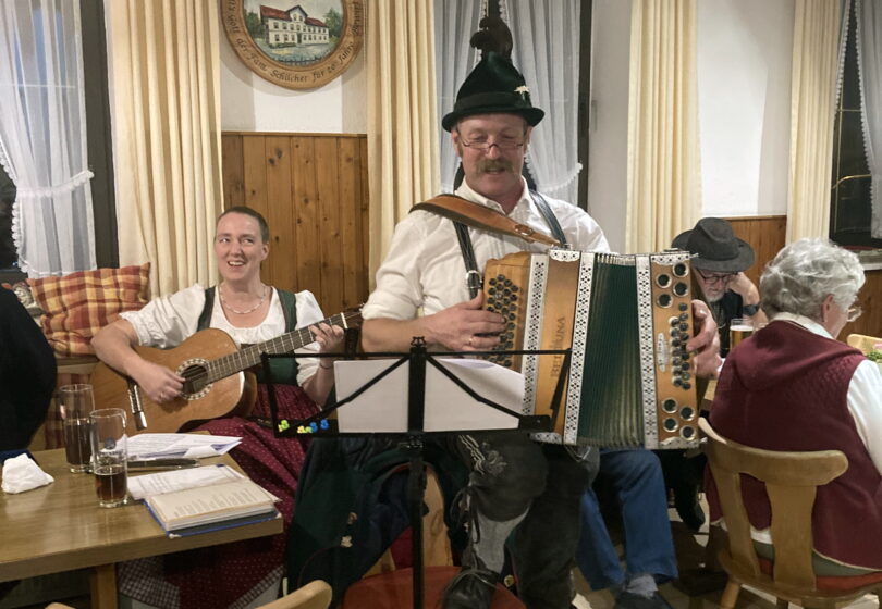 Mit den beiden Vorsängern Sepp Wohlfahrt (1.Gauvorstand) und seiner Frau Katrin war es für die vielen Besucher ein leichtes, die lustigen und auch besinnlichen Lieder mit zu singen. So wurde z. B. „ Aber alls bloß koa Wasser it“ oder der Fensterstockhias voll Freude gemeinsam gesungen. Ganz besinnlich wurde es beim Anstimmen des Glocken Jodler. Zwischendurch hat die Oberlander Stubenmusik aus der Wies mit wunderschönen Stücken unterhalten. Nach den offiziellen Abschiedsworten vom neuem Gaumusikwart Mathias Lang, verbunden mit dem Dank an die beiden Vorsänger und der Stubenmusik, ließen es sich die vielen anwesenden Musikanten nicht nehmen, noch gemeinsam aufzuspielen und manches Lied gemeinsam zu singen. Es ist gut, daß es immer noch musikantenfreundliche Gasthäuser, wie den “Uspringer Wirt” gibt, wo solche eine schöne Tradition gelebt werden darf.