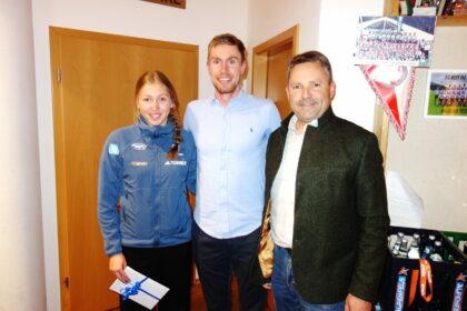 Eine weitere besondere Ehrung gab es noch für Trine Göpfert. In Anerkennung ihrer außerordentlichen sportlichen Leistungen war sie vom Wintersportverein Reit im Winkl zum Ehrenmitglied ernannt worden. Dessen weitere Vorsitzende Helmut Frohwieser und Sylvia Schärer überreichten ihr die dafür bereitliegende Ehrenurkunde. Dabei wiesen sie auch darauf hin, dass Johannes Kühn diese Auszeichnung vor nunmehr 15 Jahren ebenfalls nach dem Gewinn von Juniorenweltmeistertiteln erhalten hatte. Bürgermeister Matthias Schlechter gratulierte den Geehrten im Namen der Gemeinde ebenfalls mit einem Anerkennungsgeschenk. Durch ihre mit großem Einsatz und Ausdauer erzielten Erfolge und ihre sympathische Art seien sie erstrebenswerte Vorbilder für die Jugend und für die ganze Gesellschaft. Als Partner von Reit im Winkl trügen beide maßgeblich zum Bekanntheitsgrad des Ortes in der ganzen Welt bei.