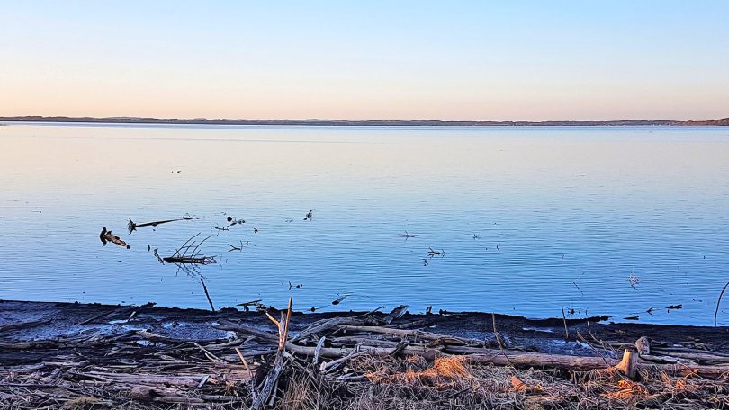 Gegen Abend schau ich noch einmal in die Hirschauer Bucht und auch jetzt herrscht noch absolute Stille, nicht einmal Blässhühner sind zu sehen oder zu hören.