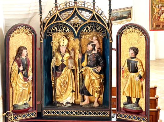 „Missionar Wolfgang wurde von Kaiser Otto nach Köln geholt, doch lehnte er es im Jahr 964 ab, sich für Trier zum Bischof weihen zu lassen, er trat in das Benediktiner-Kloster Einsiedeln in der Schweiz ein, empfing dort mit 43 Jahren die Priesterweihe und übernahm die Klosterschule. Nach einer Missionstätigkeit ab 971 in Ungarn wurde er zurückgerufen und Ende des Jahres 972 in Regensburg zum Bischof geweiht“ – so Pfarrer Overmayer. Weiters informierte er, dass durch die von Wolfgang von Regensburg gegründete Domschule mit Chor die heutigen Regensburger Domspatzen hervorgingen. Ein besonderer Dank des Pfarrers galt der Mesnerfamilie Hildegard und Franz Osterhammer für deren fürsorgliche Betreuung der Kirche von St. Florian und für die von ihnen angebotenen Kirchenführungen. Ein weiterer Dank galt der Familie von Wolfgang Kink, die als Bläserquartett und als Familienmusik Kink für die musikalische Gestaltung beim Patroziniumsgottesdienst sorgten.