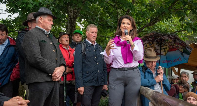 Bildunterschrift: Landwirtschaftsministerin Michaela Kaniber bei der Almbegehung