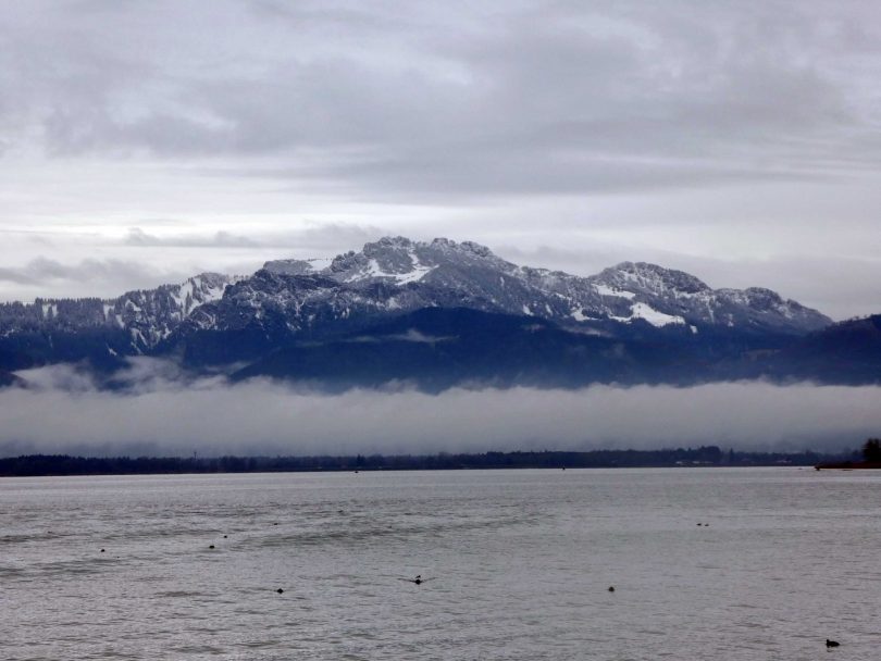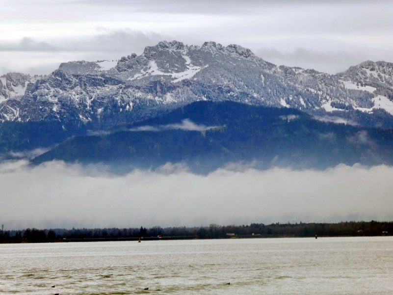 Eine landschaftliche Einheit im Chiemgau sind der Chiemsee und die Kampenwand, sie präsentieren sozusagen das prägende Seen-Berge-Motiv. In diesen adventlichen Tagen zog sich ein längliches Niedrigwolkenband entlang der Kampenwand – davon einige aktuelle Aufnahmen.