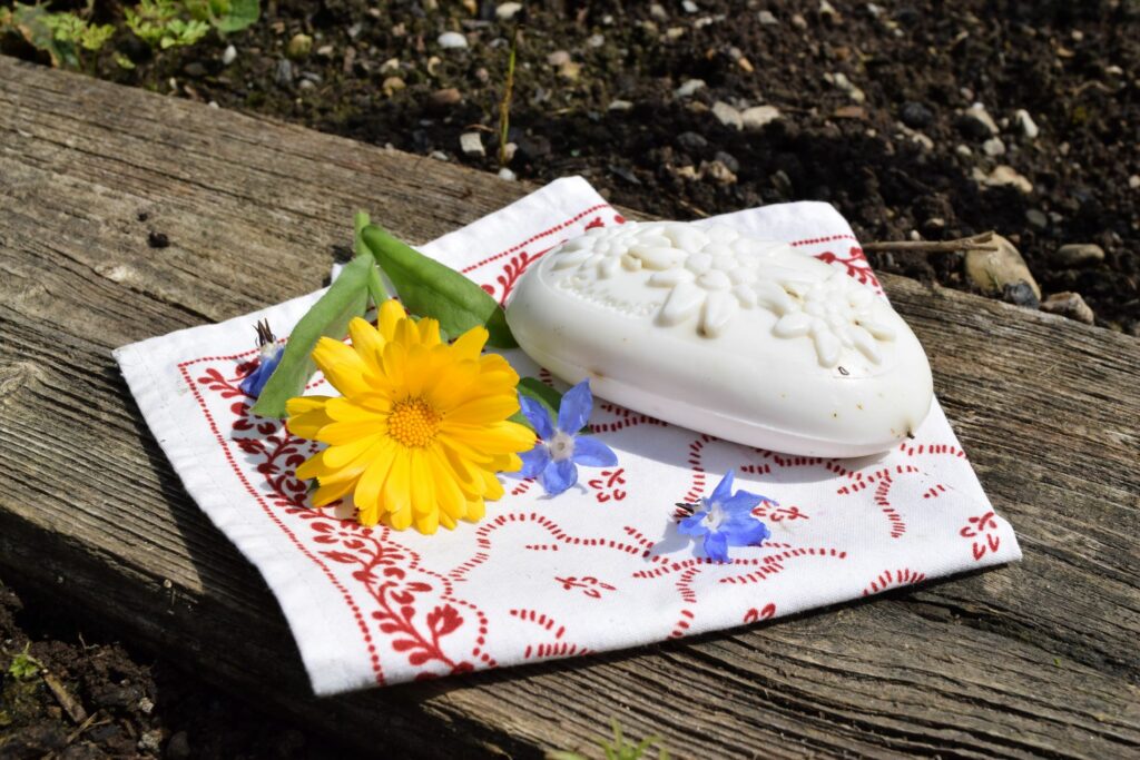 Aus Blumen und Kräutern der Museumsgärten entsteht die eigene Kräuterseife © Bezirk Oberbayern, Archiv Bauernhausmuseum Amerang.