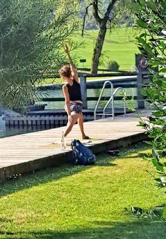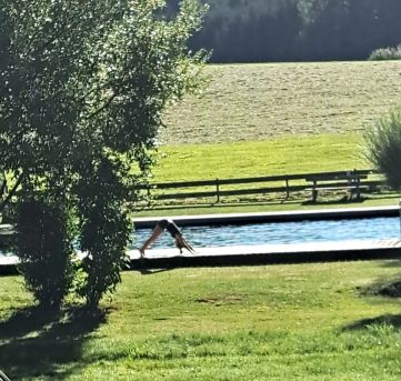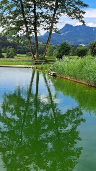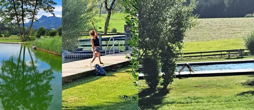 Eine sichtbare und bestimmt wohltuende Einheit sind morgendlicher Yoga-Sport und die Idylle des Samerberger Naturbades. Gerade in diesen sonnigen Sommertagen ist körperliche Fitness angesagt.