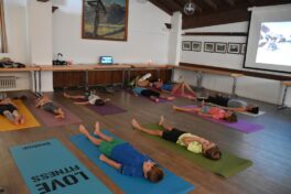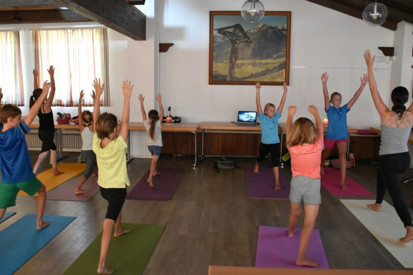 Die kleinen Yogis waren sehr ernsthaft bei der Sache und legten zum Schluss die Hände im Namasté (indischer Gruß) vor das Herz, um sich zu bedanken.Bettina Rappl arbeitet seit fünf Jahren als ausgebildete Yoga-Lehrerin –bisher für Erwachsene- und absolviert gerade eine Zusatzausbildung für Kinder-Yoga. Das liegt ihr offensichtlich sehr; denn die jungen Yogis waren begeistert, Yogini Anna meinte „es hat mir sehr gefallen, am besten war das Radfahren und das Surfen“.