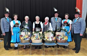 60 Jahre Mitgliedschaft 2021 (von links) 2. Vorstand Bernhard Schützinger, Aktivendirndl Simone Spiegelsberger, Zita Hirschhalmer, Anna Öllinger, Marianne Huber, Johann Maier, Aktivendirndl Christina Kriegenhofer und Vorstand Stefan Lohwieser. (Fotos: Buthke)
