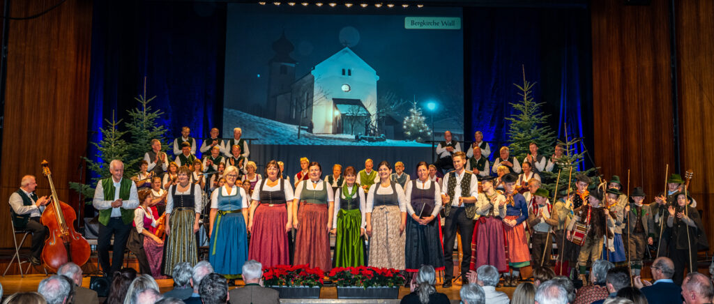 Die Riederinger Hirtenkinder vom Trachtenverein Riedering GTEV Almengrün unter Leitung von Georg „Schoschei“ Staber trugen ebenso auf beeindruckende Weise zur Magie des diesjährigen Rosenheimer Adventssingens bei. Ihre Mitwirkung verlieh dem Event eine authentische Note, die das Publikum tief berührte. Unter dem Motto “Wir spielen nicht, wir sind als Hirten unterwegs” brachten die elf Hirtenkinder ein Stück gelebter Tradition auf die Bühne. Ihr Hirtenspiel präsentierte die Weihnachtsgeschichte auf eine einzigartige Weise, als ob das Wunder der Heiligen Nacht sich direkt im malerischen Chiemgau ereignet hätte. Die Hirtenkinder erzählten und sangen die Geschichte mit einer Mischung aus Leidenschaft und Ehrfurcht. Ihre Darbietungen wechselten zwischen leisen und lauten Passagen, wurden mehrstimmig vorgetragen und von authentischen bayerischen Instrumenten wie Ziach, Flöte und Querpfeife begleitet.