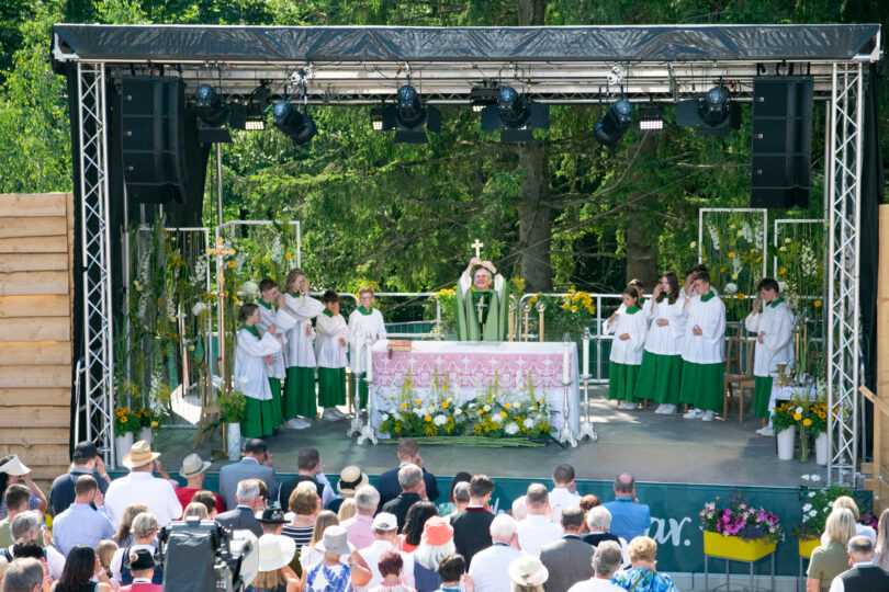 Auch die Ministranten zeigten sich erleichtert, als es vorbei war. „Ich hatte Angst, dass ich was Falsches mache“, sagt die zehnjährige Antonia Riedl aus Freyung, die erst seit einem Jahr ministriert. Trotz der Aufregung würde sie es aber nochmal machen, während sich da Felix Skotzek aus Ringelai noch nicht so sicher ist. So schnell wird das ohnehin nicht mehr passieren, denn nur einmal im Jahr sendet das ZDF einen Fernsehgottesdienst im Freien. „Es ist ein großer Aufwand“, erklärt Brigitte Duczek, Redaktionsmitglied bei „Kirche und Leben“ im ZDF. Sie und das rund 30-köpfige Team waren seit Donnerstag vor Ort, bauten alles auf, probten bis in den Abend hinein mit den Akteuren. Ihr Fazit nach der Übertragung: „Tolles Wetter, tolle Menschen, ganz große Hilfsbereitschaft, wir haben es hier sehr genossen“, so Duczek.