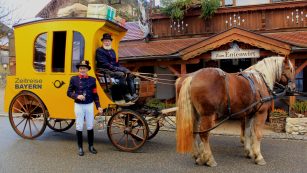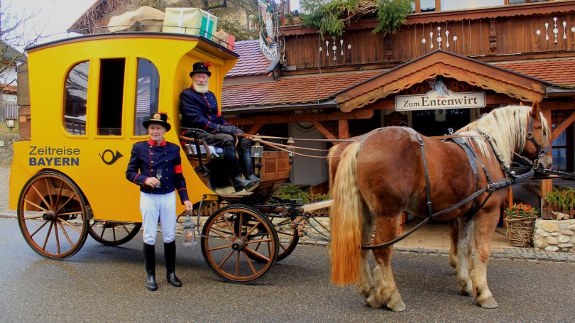 Foto: Albert Grillhiesl – Die Samerberger Postkutsche macht Halt beim Entenwirt – das nächste Mal am Sonntag, 10. August 2021