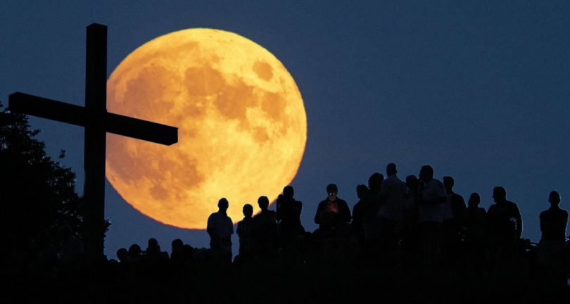 Im Rahmen der Filmproduktion Zeitreise Bayern ist Klaus Bichlmeier immer auf der Suche nach spektakulären Momenten. Dazu hatte er Gelegenheit in der Nacht vom 7. auf den 8. April 2020. Der größte Vollmond des Jahres strahlte vom bayerischen Himmel. Für seinen Film lag der Kameramann auf der Lauer, um die geeignete Perspektive zu finden.. In dieser Nacht war der Mond auf dem erdnächsten Punkt seiner Laufbahn, 356.000 km von der Erde entfernt. Man könnte fast meinen, es ist eine optische Täuschung. Dies gelingt auch nur, wenn man ein Teleobjektiv mit einer langen Brennweite (500 mm) verwendet. Zu sehen sind die Aufahmen ab November, wenn Bichlmeier seinen Zeitreise-Film erstmals vorführt.