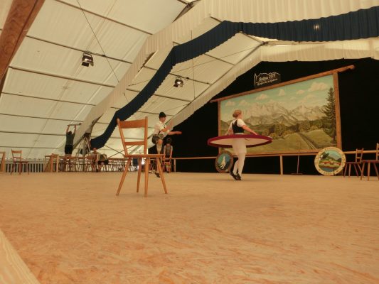 Heut probieren die Dirndln fürs Gaudirndldrahn am Freitag die Bühne aus – Proportionen sind ja wie jedes Jahr, denn die Bühne ist immer die gleiche, aber wie greift heuer der Boden, wie ist die Atmosphäre und … wie stark ist die Konkurrenz?