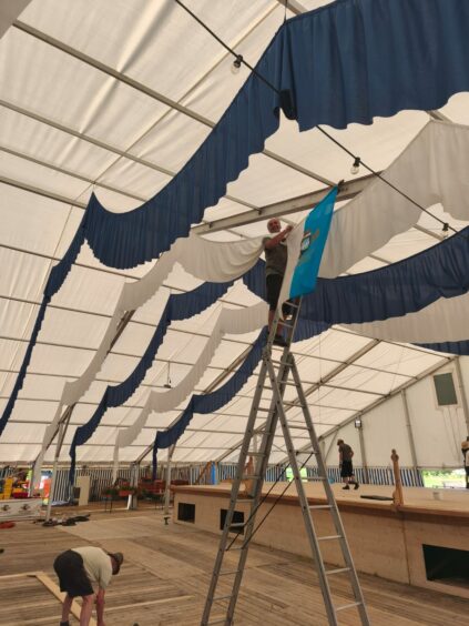 Dazu heißt es von Seiten der Festvereine (GTEV Prien und Jungbauernschaft Prien und Umgebung) in zurückschauender Dankbarkeit: “Während bestimmt einige Besucher des Kesselfleischessens beim Heimgehen in Erinnerungen an die schönen Festzelttage schwelgten, waren schon einige Helfer fleißig dabei in der Nacht noch die Biertischgarnituren aus dem Zelt zu räumen. Somit konnten am Dienstag alle Helfer sich gleich um die anderen Dinge im und um das Zelt kümmern. Ob Kaffee-/Kuchenbar, Bar, Schenke oder Beleuchtung und Boden des Hauptzeltes – mit vielen helfenden Händen schaffte man es dass hier bereits am ersten Tag vieles geschafft wurde.