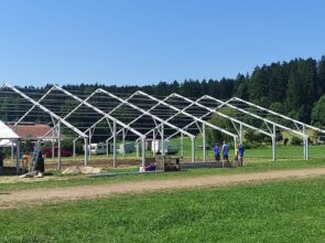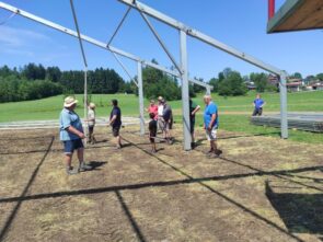 Die Bühne wurde ab der Früh von den Feldwiesern Trachtlern abgebaut, wir werden sie (also die Bühne) beim kommenden Gaufest in drei Wochen wiedersehen dürfen… – Am Mittwoch wurde sich dann noch früher getroffen, da es ja wie angekündigt einer der heißesten Tage des Jahres sein sollte. Wieder mit vielen Helfern konnte das Zelt abgebaut und alles aufgeräumt werden. Inzwischen erinnern nur noch die kahlen Stellen auf der „Kastler“-Wiese daran, wo vormals das Zelt gestanden ist. Nach vierwöchiger Pause können nun auch die Störche wieder auf „ihrer“ Wiese sein. Vergelt’s Gott an alle fleißigen Helferinnen und Helfer! Egal ob sie vor, während oder nach dem Fest dabei waren… ohne Euch alle wären die Priener Festwochen in dieser Form nicht machbar gewesen”.
