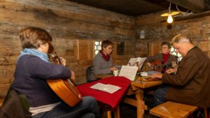 Wieder mit dabei: die Zupfnudlmusi und Zwoaraloa aus München mit Zither, Gitarren und Raffele. Bildquelle: Bezirk Oberbayern, FLM Glentleiten, Foto: Sauer