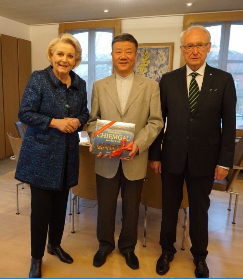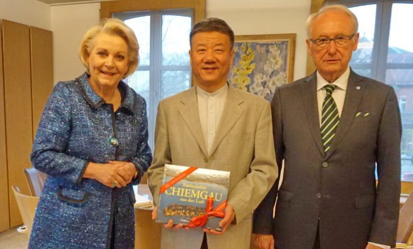 Oberbürgermeisterin Gabriele Bauer empfing am 10. April den chinesischen Generalkonsul Yue Zhang im Rosenheimer Rathaus. Im gemeinsamen Gespräch betonte der Generalkonsul sein Interesse an wirtschaftlicher Kooperation sowie an einem Bildungs- und Kulturaustausch. Mit einem Bildband aus Stadt und Region Rosenheim weckte Oberbürgermeisterin Bauer das Interesse des chinesischen Gastes an weiteren Besuchen in Rosenheim und dem Chiemgau. Yue Zhang versprach, dass die nicht lange auf sich warten lassen werden.