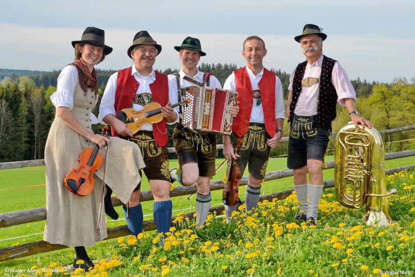 Die Zuahäusl Aufgeiger musizieren am Donnerstag, 18. August, von 19 Uhr bis 21:30 Uhr wieder zünftig im Brunnenhof des Kurhauses Bad Aibling. Die Gruppe steht für fetzige Geigenmusik, ruhig und kräftig, wie es grade passt. Vier Männer und eine Frau, eine Mischung aus Tirol, Ober- und Niederbayern. Schon seit vielen Jahren treten die fünf Vollblutmusikanten bei der Volksmusikreihe im Brunnenhof, Kurpark Bad Aibling, auf und begeistern das Publikum mit ihrer Musik und Spielfreude.