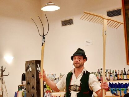 Auch dieses Jahr war Josef Bauer – „Pfeiffer Sepp“ der Versteigerer, der mit Witz und Humor durch den Abend führte. Im vergangenen Jahr trat er in die Fußstapfen seines Vaters Hartl Bauer, der als Versteigerer den Trachtenverein Jahrzehnte lang die Treue hielt. Sepp Bauer – „Pfeiffer“ bedankte sich bei allen Helfern und Gönnern, die es durch Ihre Sachspenden jedes Jahr wieder ermöglichen die Versteigerung abzuhalten. Mit seinem Talent brachte er anschließend alle Versteigerungsgegenstände, Maschinen sowie die teilweise durch Mitglieder handgefertigten Werkzeuge und unzählige Brotzeiten wie selbstgemachtes Brot oder Geräuchertes Fleisch „unter den Hammer“. Sehr beliebt waren auch die Überraschungspakete, bei denen niemand wusste, was sich in den Taschen und Rucksäcken befindet. Als Höhepunkt wurde als letzter Gegenstand die handgefertigte Hausbank mit anklappbaren Tisch spannungsvoll versteigert.