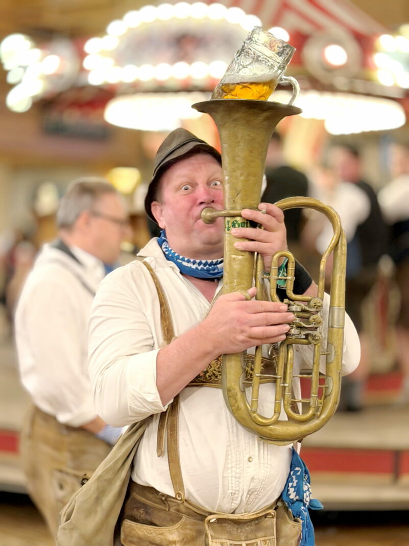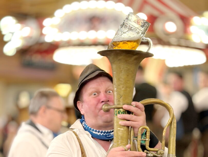 Die Starkbierfeste in der Region Chiemsee-Alpenland und im Rosenheimer Land sind schon voll im Gange – dies zeigt dieser Schnappschuss, der beim Starkbierfest von Auerbräu in der Inntalhalle von Rosenheim mit dem Musikanten von “14 Hoibe” gelang.