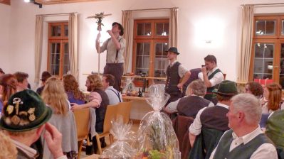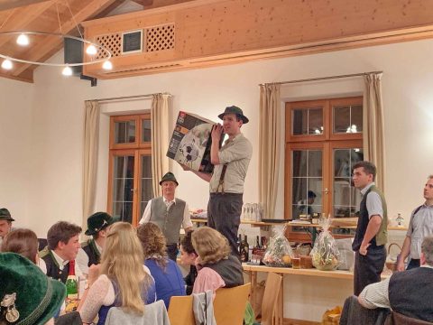 Mit vielen kulinarischen Köstlichkeiten und einfallsreichen Sach-Spenden kamen die Mitglieder und Gönner des Atzinger Trachtenvereins ins Atzinger Vereinshaus zum traditionellen Versteigerungs-Hoagascht – und unter anderem mit Laternen, Schneeschaufeln oder einem Sack Kartoffeln verließen sie zu vorgerückter Stunde wieder die Heimstätte der „Daxenwinkler“-Trachtler. Dazwischen lagen heitere Stunden mit der Anzwies-Musi und mit Sebastian Strohmayer als Versteigerer. Strohmayer verstand es mit Übersicht, starker Stimme und Sinn für Humor, für alle Waren das Interesse im voll besetzten Vereinshaus zu finden. All die Erlöse aus diesem Abend kommen der Nachwuchsarbeit innerhalb des Atzinger Trachtenvereins zugute. Unter den vielen Besuchern konnte Erster Vorstand Michael Schlosser auch einige Ehrenmitglieder, Vorstände der Ortsvereine von Wildenwart und Atzing sowie die ehemaligen für den Atzinger Trachtenverein aktiven Versteigerer Ernst Rupp, Robert Gmeiner, Jakob Steiner und Andi Willmann willkommen heißen.