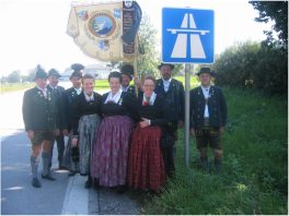 - Chiemgauer Abordnung Station I bei der Autobahn in Bernau vor dem Zustieg zum Bus des Gauverbandes I