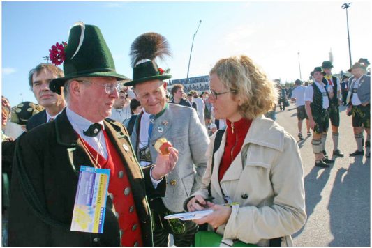 München (hö) – Einen Tag nachdem eine Delegation des Bayerischen Trachtenverbandes beim Empfang von Papst Benedikt XVI bei der Residenz in München zugegen war, versammelte sich eine große Anzahl an Trachtlerinnen, Trachtlern und Trachtlerfamilien beim Gottesdienst in München-Riem. Bei Kaiserwetter präsentierte sich die macht- und prachtvolle Kirche ihrerseits und die Trachtenabordnungen zeigten von ihrer Seite Vielfalt und Farbenpracht unter weiß-blauem Himmel. „Die Katholische Kirche in Bayern und Deutschland ist großartig. Es gibt viel Hilfe, wo es Not tut“, begann der Papst in seiner Predigt. Ergänzend machte er jedoch darauf aufmerksam, dass bei sozialen Projekten eine raschere Hilfe zu erfahren ist als bei Evangelisierungs-Projekten. Hier gibt es zu starke Zurückhaltung, weil Fertigkeiten und Techniken mehr der Machterhaltung, der Machtergreifung und der Zerstörung dienen als der Liebe, so Papst Benedikt XVI. Insgesamt versammelten sich rund 250.000 Gläubige, um gemeinsam gemäß dem Reisemotto „Wer glaubt, ist nie allein“ in froher Sonntagsstimmung zu pilgern, zu beten und zu singen. Unsere Aufnahmen zeigen einige Eindrücke aus den Reihen der Chiemgauer und bayerischen Trachtlerinnen und Trachtler.