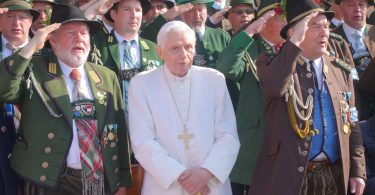 Der Papst-Empfang bei der Münchner Residenz war nicht nur für die drei Kinder tief beeindruckend. Rund 270 Trachtlerinnen und Trachtler, davon 44 Mitglieder des Musikvereins Trauchgau aus dem Oberen Lechgauverband, zeigten auf einer Seite des Eingangsbereiches die Vielfalt bayerischer Trachten und Abordnungen. Auf der anderen Seite postierten sich rund 300 Gebirgsschützen aus 47 Kompanien und aus fünf Gauen unter der Leitung von Landeshauptmann Karl Steininger. Papst Benedikt XVI, Ehrenmitglied bei der Tegernseer Kompanie, war sichtlich angetan, als er bei der Ankunft mit dem Papamobil die Trachtler- und Schützenspaliere sah und als er bei der Abreise die Fronten zu Fuß abschritt. „ Gott und Papst sei Dank“ – so drückte eine Trachtlerin ihre Freude über ihr Dabeisein aus. Bei Kaiserwetter und einer traumhaften Sonnenuntergangsstimmung war es für alle Beteiligten ein aussergewöhnliches München-Erlebnis. „Rom Teil II“ – in diese Kurzform brachte es ein Trachtler. Denn sowohl der Bayerische Trachtenverband als auch der Bund der Bayerischen Gebirgsschützen waren bereits zu einem Audienzbesuch bei Papst Benedikt XVI in Rom. Nach der abendlichen Begegnung machten sich die Brauchtumsvertreter wieder auf den Heimweg, denn schon am anderen Tag ganz zeitig in der Früh galt es wieder aufzubrechen, um dann am Gottesdienst teilzunehmen. Für die Kinder aus dem Achental aber war das große Erlebnis vorerst vorbei. „Diese Hand habe ich dem Papst gegeben“, so die kleine Sophie stolz mit dem Versprechen, gut auf den Rosenkranz aufzupassen.