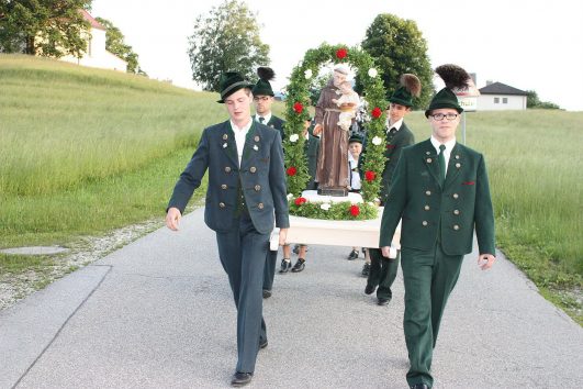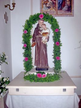 Fotos: Hötzelsperger – u.a. Heiliger Antonius in der Kirche “Christkönig” von Wildenwart, wird bei Fronleichnamsprozessionen vom Trachtenverein Atzing getragen.